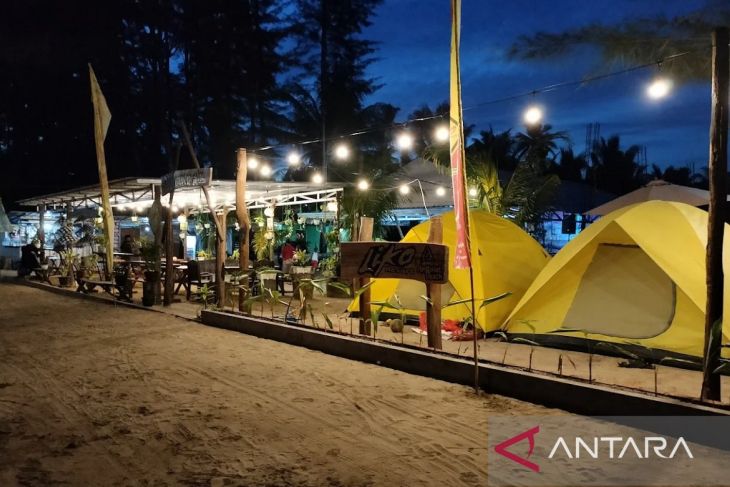 Sambil menyeruput kopi susu di muka tenda, Indra bersama istri hanya fokus menikmati keindahan Pantai Ambalat dengan berkemah mewah atau disebut glamorous camping (glamping).